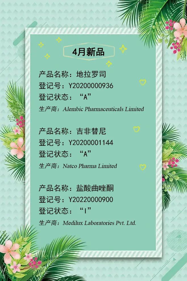 我司积极进行原料药审批,几乎每月均有新增批准品种。